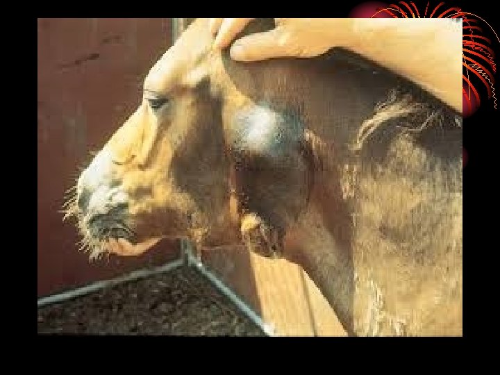 Sintomas • Anorexia • Oscilação de temperatura 39 a 40 passando para 40 a 41 • Corrimento nasal • Aumento de linfonodos (retrofaringeos) • Tosse e espirros • Dificuldade respiratória e na deglutição