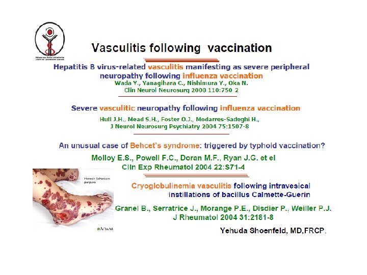 Vakcináció és autoimmunitás BALB/c egerek hyperimmunizálása tetanus vakcinával (glycerol, Al-hidroxid, CFA) APS, Hughes sy, trombózis, meddőség alakul ki (Dimitrijevic et al. 2012) Oltást követően az alapbetegség reaktiválódhat Vista et al. Lupus 2012. Perdan-Pirkmayer et al. Lupus 2012 Scriano et. al. Lupus 2012 Influenza vakcinációt követően fellángoló autoantitest termelés Saudi Sheikh story: 27 éves korában kezdődő kötőszöveti betegség (izületi fájdalom, kiütés, SS-A pozitivitás SLE diagnózis) Kezelés után visszaszoruló antitestek, tünet mentesség 12 éven át. 39 évesen, influenza oltást követően 2 héttel súlyos arthritis, pericarditis jelentkezett, nagy dózisú steroid kezelés vált szükségessé. (N. Agmon-Levin et al. Lupus, 2012)