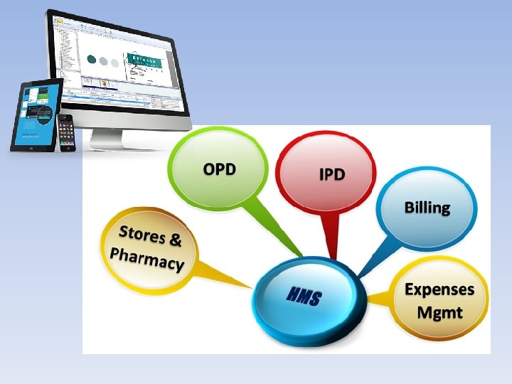 HMS-V 1 HMS-V 2 HMS-V 3 • Doctor Appointment • OP • Prescription Printing • OP Billing • Waiting hall Mgmnt • SMS / Email Alert • Lab Billing • Reports • Doctor Appointment • OP • Prescription Printing • OP Billing • Waiting hall Mgmnt • SMS / Email Alert • Lab Billing • HR & Pay. Roll • IP Billing • Pharmacy • OT Billing • Inventory • Birth Certificates • Reports