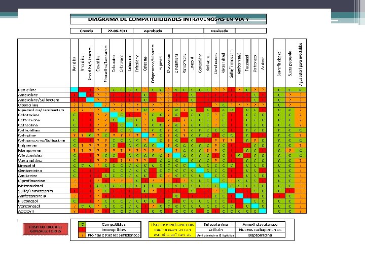 Recomendación • Actualizar tablas de compatibilidad (agregar medicamentos nuevos) • Evitar administrar antibióticos simultáneamente, si se administran revisar incompatibilidades (infusiones prolongadas)