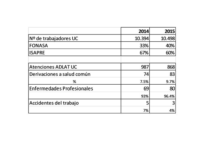 ADLAT UC DISTRIBUCION DE TRABAJADORES UC: Ø Ø Ø Red de Salud: Casa Central: Campus San Joaquín: Campus Oriente: Campus El Comendador: 5. 622 1. 468 2. 717 353 234 TOTAL: 10. 394
