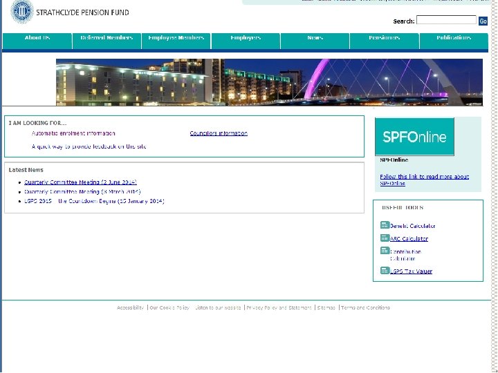 LGPS 2015 SPFO Implementation • • Deliver project plan Collaborative approach • • Scottish Pensions Liaison Group (SPLG) Local Authorities Pension Forum Communications strategy Training programme