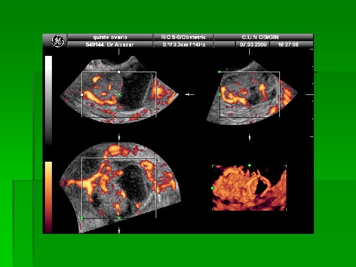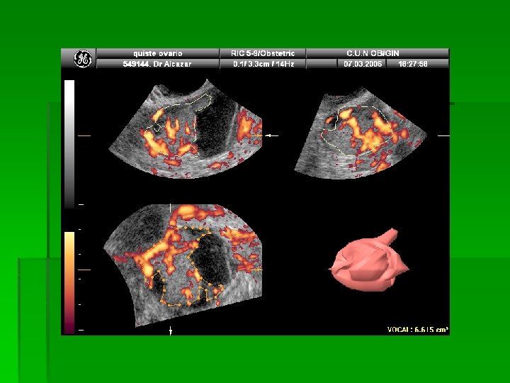 PROBIR OVARIJSKOG KARCINOMA v. UZV: v 2 D, CD, PD, 3 DPD, 3 DPDA v 3 D-PDA- vascular sampling (Alcazar JL)