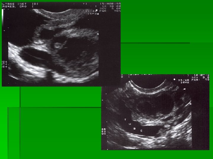 Morfološki 2 D UZV kriteriji PARAMETRI Ehogenost Slobodna tekućina Anehogeno / Hipoehogeno Miješana Odsutna Prisutna