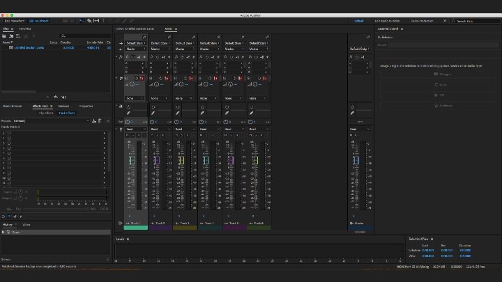 Channels ● Audition gives you the option to work with either Mono or Stereo channels, which differ in the amount of channels (signals) that they employ. ○ Mono uses one channel while Stereo uses several. With this, multiple speakers can reproduce sounds in stereo and hence sounds coming from individual channels. Multiple speakers can reproduce sounds in mono, but they replay the same signal, so it sounds like one audio source. ■ If you are recording music or jingles, stereo is a good option ■ If you are recording a voiceover, mono is a good option