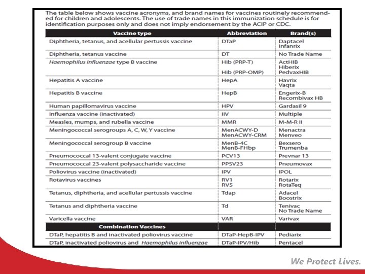 Immunization Schedule Updates • All staff must use the same immunization schedule • Schedules: § Children & Adolescents 0 through 18 years § Catch-up schedule for ages 4 months -18 years § Children and Adolescents 18 years or younger based on medical indications § Adult 19 years and older § Adult based on medical and other indications READ THE FOOTNOTES http: //www. cdc. gov/vaccines/schedules/hcp/child-adolescent. html http: //www. cdc. gov/vaccines/schedules/hcp/adult. html