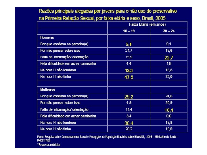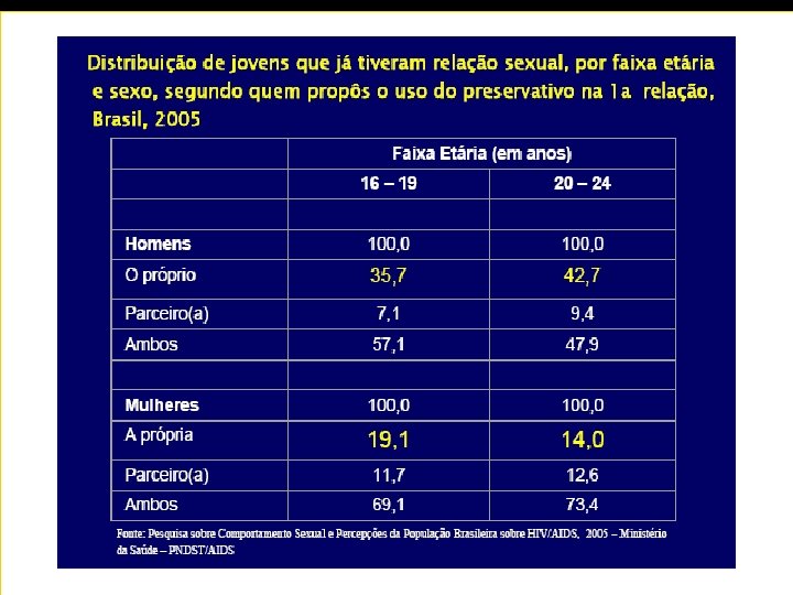 Promovendo um comportamento mais seguro A necessidade das mudanças de comportamento diferentes estratégias de comunicação: educação formal, não formal, teatro, dança, música, esporte e uso de tecnologias. Programas educacionais devem envolver os pais e professores e preparar o jovem para a vida em família. As mudanças na legislação e nas políticas (verificadas em vários países) são a melhor forma de se consolidar programa.