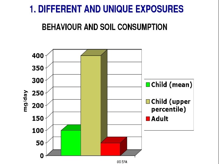 1. Transplacental and breast feeding 2. Exploratory behaviours : Hand-mouth, non-nutritive ingestion 3. Stature and living zones, microenvironments: Location – lower to the ground; high surface area to volume ratio 4. Children do not understand danger : Pre-ambulatory; adolescence – “high risk” behaviours
