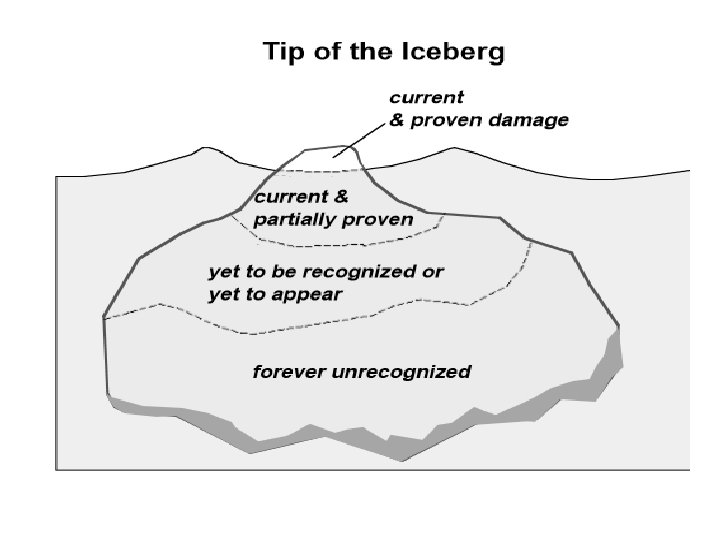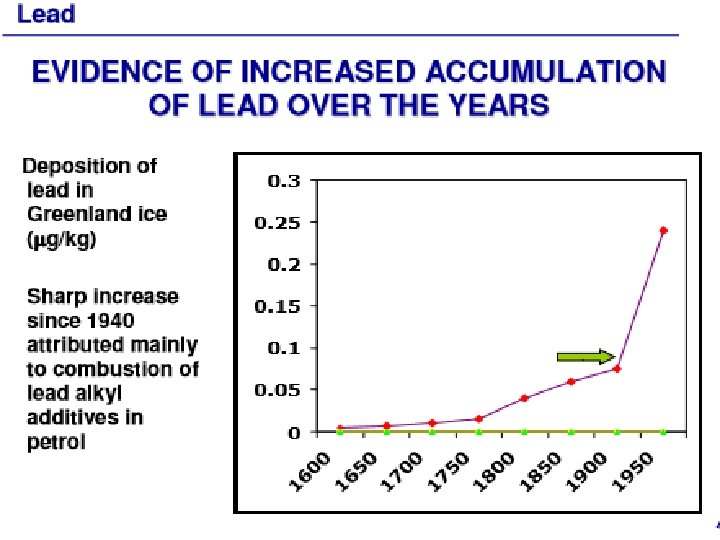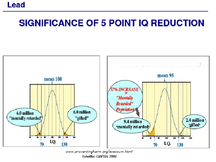 • For each 1 µg/d. L increase of BLL the IQ decrease is 0. 25– 0. 5 • Child - 70% - Lungs and GI system & pregnancy also-70% • In chronic exposure the main deposits (90%) are in the bone, with very slow elimination (25 yrs) Deposits enter blood during pregnancy Exposure now impact later