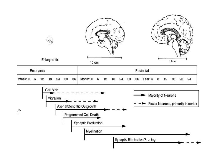 • Genes provide the “blue-print” for the architecture • Form is sculpted by the “environment and experience” • The brain produces 2 -3 times the full adult complement of neurons. • >50% eliminated before birth