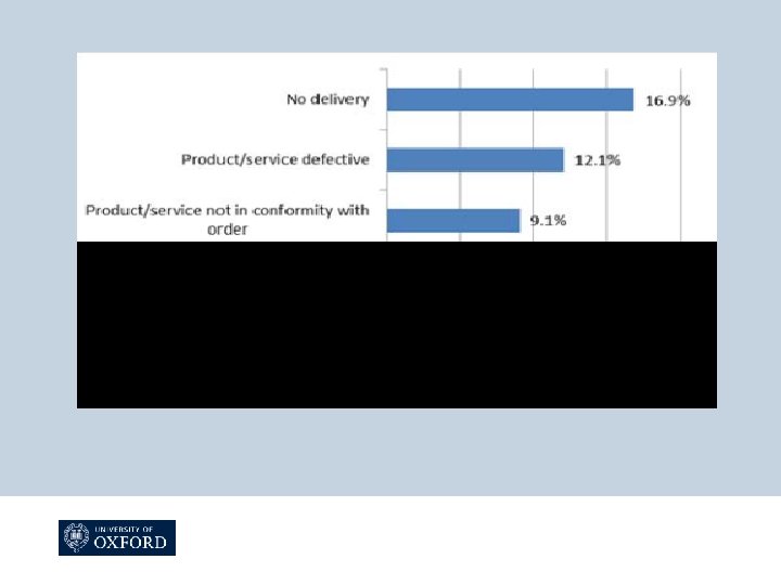 Main economic sectors concerned by complaints Transport, of which: -Air transport (including problems with luggage) -Car rental Percentage 32. 1% 21. 6% 3. 4% Timeshare related products and package holidays 7. 4% Recreational, sporting and cultural services 7. 0% Furnishing, household equipment and routine household maintenance 6. 8% Audio-visual, photographic and information processing equipment 5. 6% Health 5. 1% Communication 4. 7% Clothing and footwear 4. 5% Hotels and restaurants 4. 5% Personal care goods and services 3. 0% Financial services and insurance 2. 5%