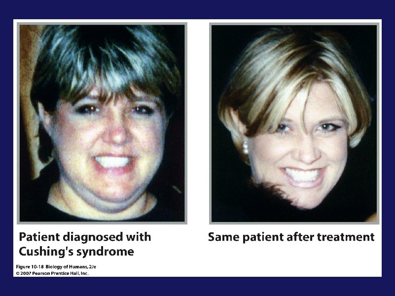 Hypercortisolism, a. k. a Cushing’s Disease • Can also result from prescription use of glucocorticoids - Prednisone - Used to treat asthma, rheumatoid arthritis, lupus (autoimmune disease), inflammatory diseases, immunosuppression after organ transplantation