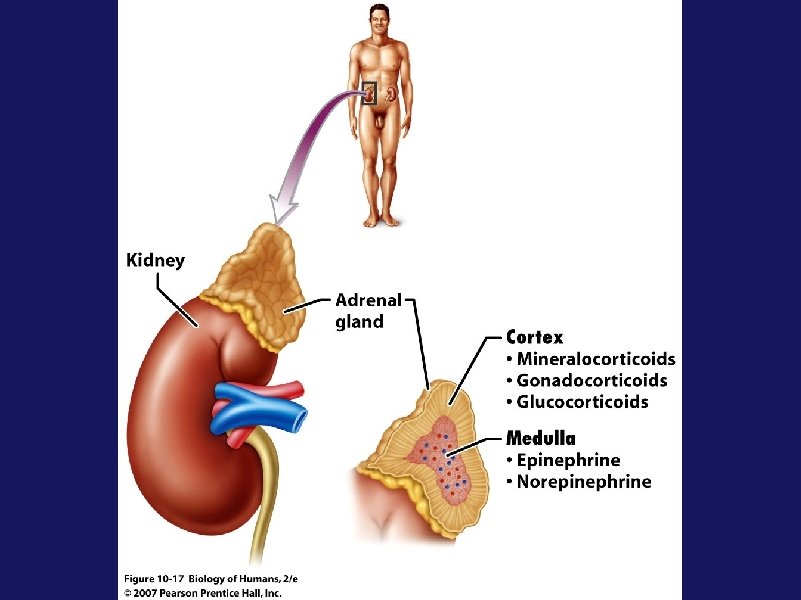Adrenal Glands: Cortex • Adrenal cortex – Mineralocorticoids: aldosterone • Homeostasis of Na+, K+, water, blood pressure