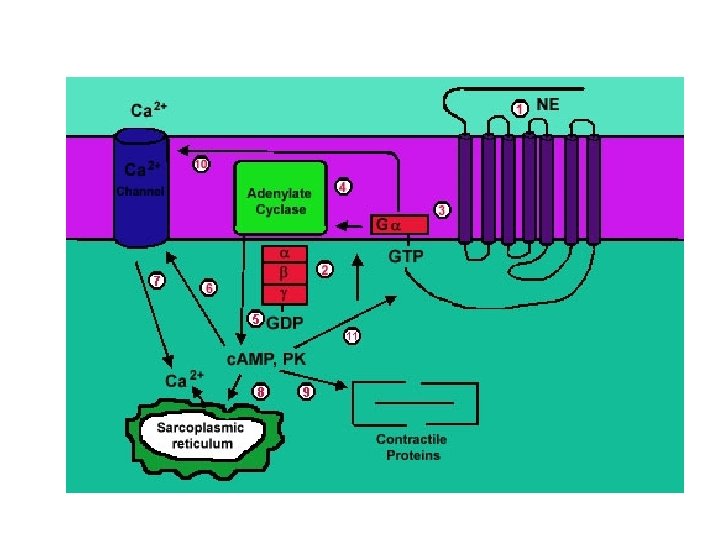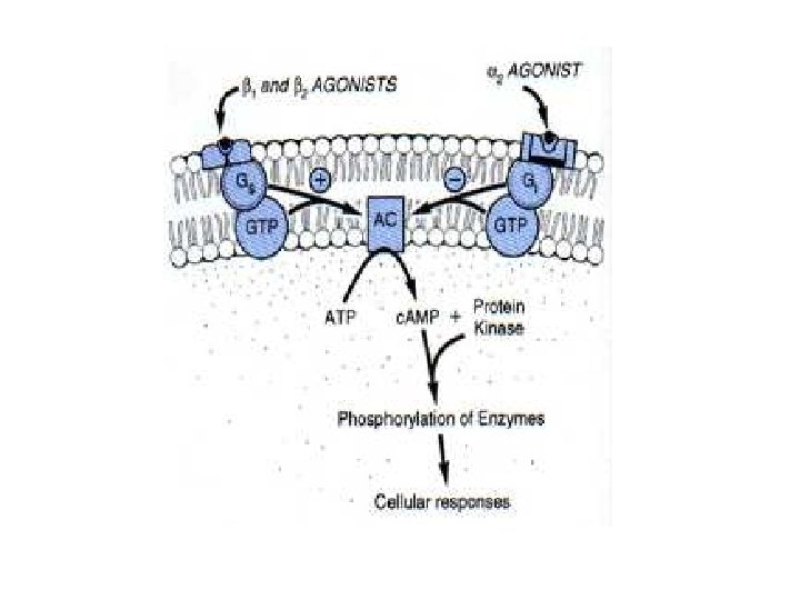 Adrenergic Receptors • Heptahelical, G-prot-linked transmembr receptors • 2 categories: a and b, subcategories • a – affinity for adrenaline > noradrenaline – a 1 (A, B, D) mostly use Gaq G prot’s • Usually activate PLC ( PKC and DAG and intracell Ca through IP 3) • And/or activate PLA 2 – a 2 (A, B, C) varied • Gai and G 0 couple to decr’d activity adenylyl cyclase • Can act’n K+ channels, inhib’n Ca channels, act’n PLC and/or PLA 2 • b – affinity for adrenaline > noradrenaline • All (1, 2, 3) use Gas G prot act’n ad cyclase
