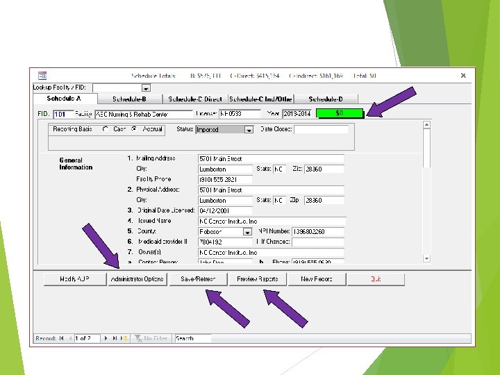 IV. Completing the Cost Report Schedule A • Contains basic information o Mailing address, physical address of the home, phone number, contact person, Medicaid #, NPI #, etc. o Please use license number given by DHSR (Dept. of Health Service Regulations) o Line 13 -Input licensed bed capacity given by DHSR. If home has SCU beds indicate the # of SCU beds and the # of other beds o In box 16 use the dates discussed earlier o Give total # of Resident days and SA Days