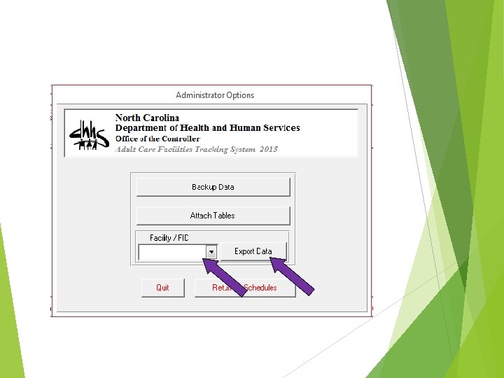 VII. Sending in Cost Report þ Finished entering cost report data þ þ Make sure the box is green þ Hint: sometime have to click on another schedule for it to turn green þ Never a bad idea to click the Save/Refresh button every now and then þ Print off a copy of the finished report Have to export the finished cost report þ Click on Administrator Option button þ Use the drop down arrow and choose facility to export, then click the Export Data button þ Even if only one home is entered in database please follow the same procedure þ Clicking export DOES NOT automatically send the cost report to me. It is still on your computer