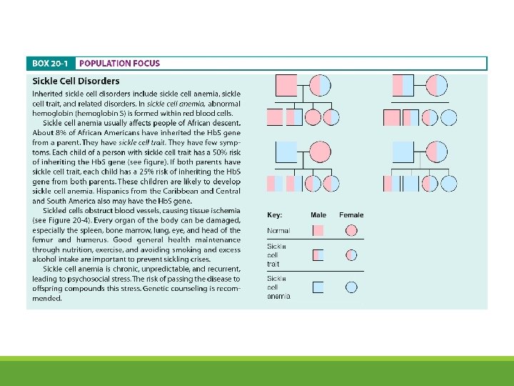 Anemia – Nursing Implications Client Teaching ◦ ◦ ◦ Types of anemia Diet Medications Genetic counseling Follow-up appointments Support groups