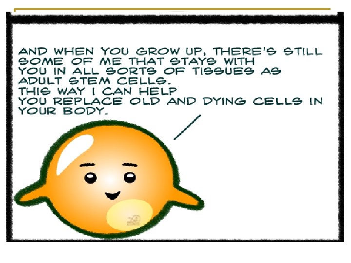 Adult Stem Cell n n Undifferentiated Cells Found throughout the body after embryonic development Multiply by cell division to replenish dying cells Regenerate Damaged Tissues.