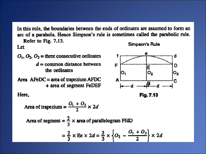 Simpson’s rule This rule assumes that the short lengths of boundary between the ordinates are parabolic arcs.