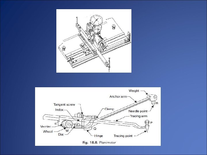 (continue) A planimeter is a precise instrument which measures the area of plan of any shape with more accuracy. There are two types of planimeter: 1. Amsler polar planimeter 2. Roller planimeter The most commonly used type is the polar planimeter.