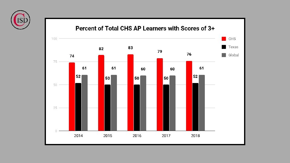CISD AP Celebrations As you know, we have been notified by the College Board that for the fourth year in a row we are an AP Honor District! This honor is bestowed on districts who have increasing AP course enrollment/exam participation and increasing AP scores on those exams.