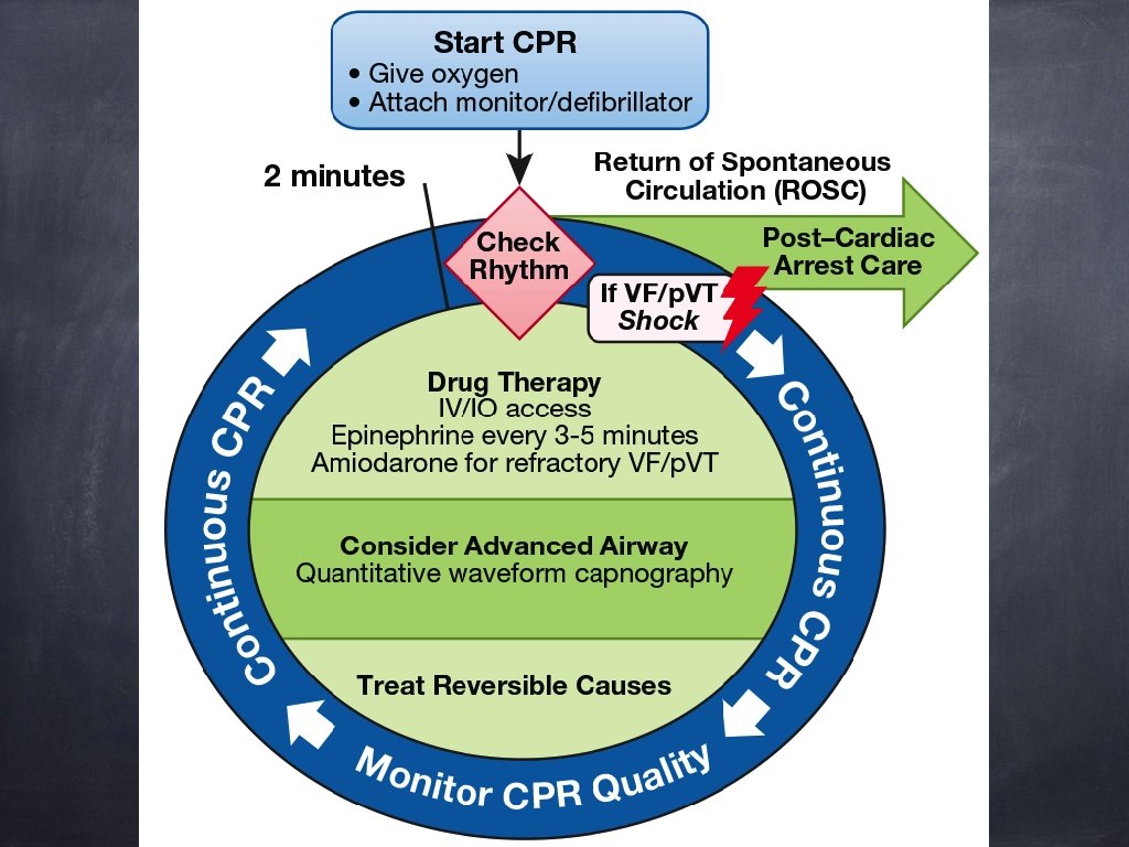 high-quality CPR defibrillation within minutes ACLS + post–cardiac arrest care BLS VF/pulseles s VT �� Survival - vascular access - drug delivery - advanced airways �� ROSC Survival?