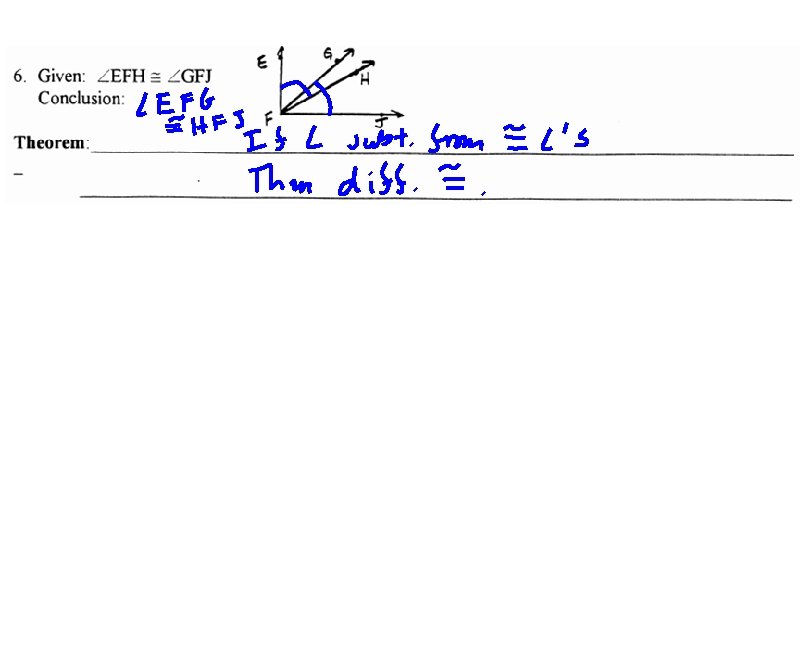 Learner Objective: Students will apply the addition and subtraction properties of sebments nd angles. If FH ≅ GE, what can we say about FG and HE? Why?