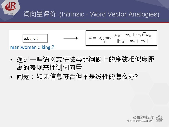 知识点回顾: Word 2 Vec & Glo. Ve • Word 2 Vec – Efficient Estimation of Word Representations in Vector Space. Mikolov et al. (2013) • Glo. Ve – Glove: Global Vectors for Word Representation. Pennington et al. (2014) – aggregated global word-word co-occurrence statistics from a corpus