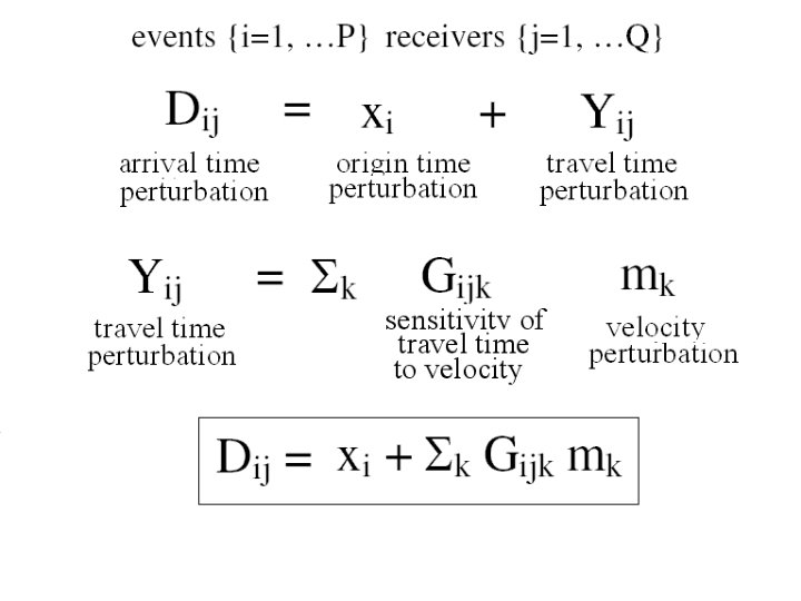 simultaneous earthquake location and tomography? Many earthquakes with unknown X, Y, Z, To Unknown velocity structure Solve for everything Using either absolute arrival times or differential arrival times