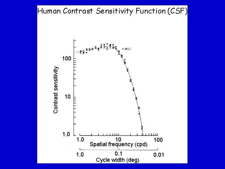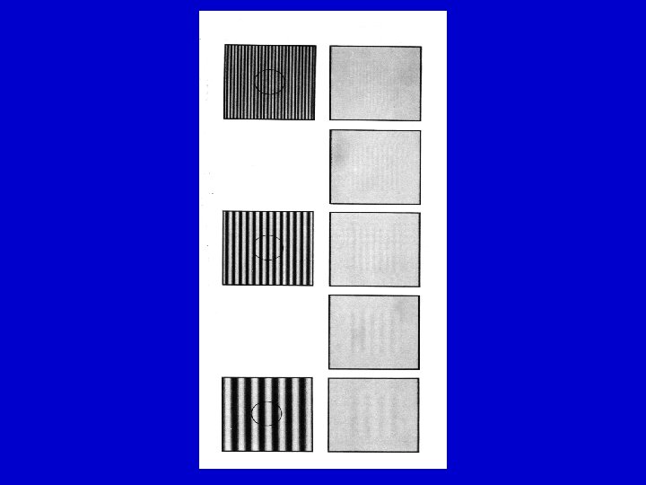 Advances in Visual Perception PSYC 526 Fall Profs Slides: 32 Download presentation Advances in Visual Perception PSYC 526 Fall Profs. Fred Kingdom & Kathy Mullen Lecture 2 “Seeing Patterns” Reading Goldstein, Ch. 3 Frisby, Ch. 4 “After-effects-The Psychophysicist’s Microelectrode” (in course pack) Scale Effects of bandpass filtering Unfiltered Lowpass filtered Highpass filtered Sinewave grating. Sine Copyright © 2002 Wadsworth Group. Wadsworth is an imprint of the Wadsworth Group, a division of Thomson Learning Fig. B 2 Appendix, page 592 Fourier components of a square wave High contrast Contrast Medium contrast Low contrast Viewing angle Spatial frequency (SF) Low SF Medium SF High SF Copyright © 2002 Wadsworth Group. Wadsworth is an imprint of the Wadsworth Group, a division of Thomson Learning Figure 15. 11, page 517 Baby’s perception of mother’s face Tilt aftereffect Simultaneous tilt contrast Copyright © 2002 Wadsworth Group. Wadsworth is an imprint of the Wadsworth Group, a division of Thomson Learning Spatial frequency after-effect Curvature after-effect Colour after-effect Mc. Collough effect Response strength Principle of univariance I Response of a single neuron Stimuli with different orientations Response strength Principle of univariance II patterns of response across neurons Neurons with different preferred orientations Response strength Bandwidth I narrow broad Stimuli with different orientations Response strength Bandwidth II Stimuli with different orientations Response strength Bandwidth III Stimuli with different orientations