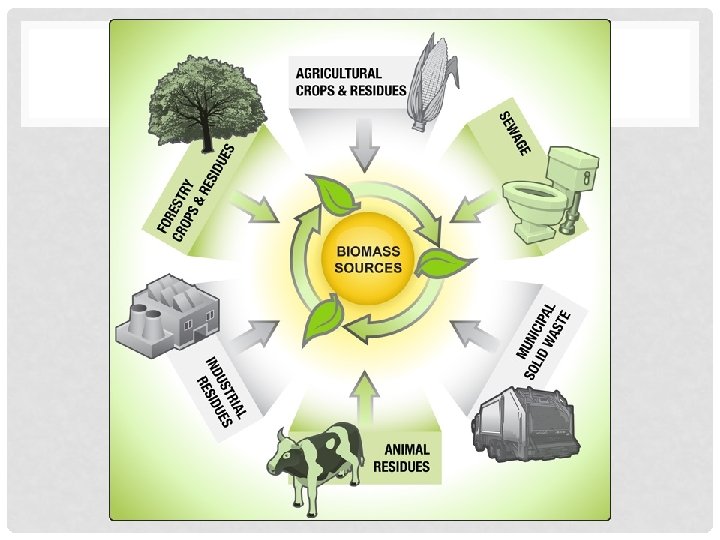BIOMASS • Advantages • Produces less harmful greenhouse gases. • Can be sustainable. • Can be used for different purposes. • Disadvantages: • Takes a lot of space. • Not entirely clean. • Expensive • Not easily transported.