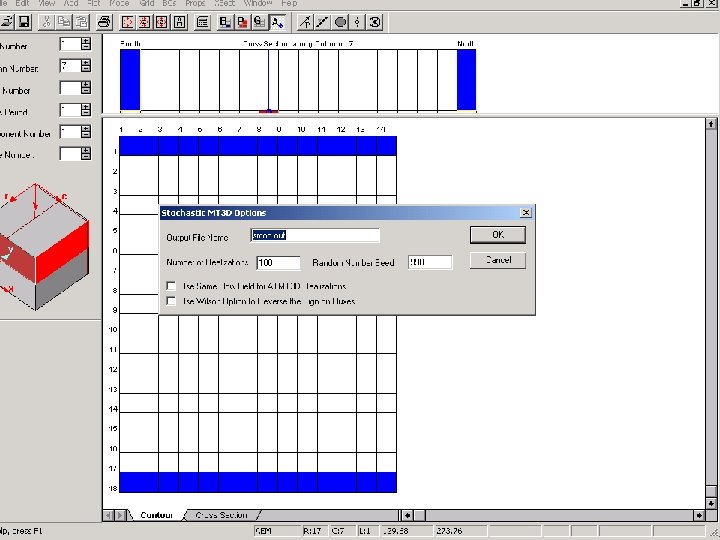Advection-dispersion model (One porosity value for entire model) kriged hydraulic conductivity field stochastic hydraulic conductivity field Observed