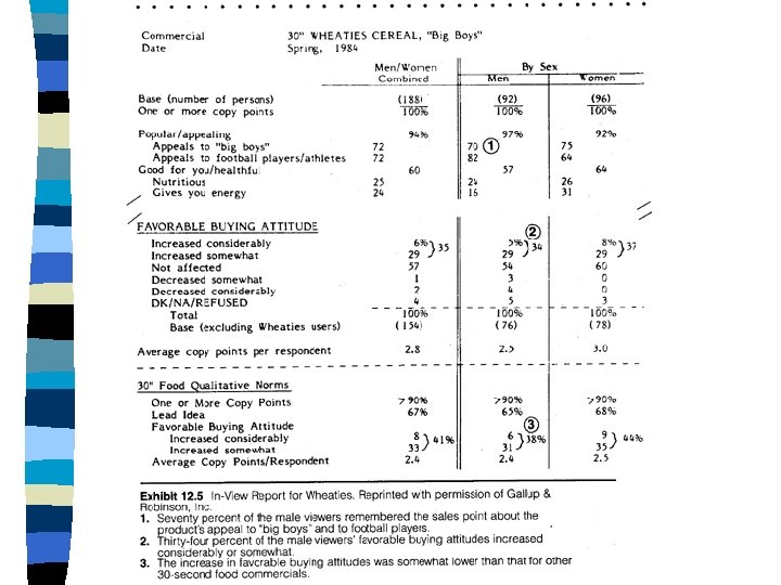 Burke's Ad. Test — Diagnostic Copy Testing For TV Or Print n n n Evaluate commercial's ability to communicate its strategic messages. Compare with database for being believable, involving, and motivating. Determine reactions to specific executional elements.