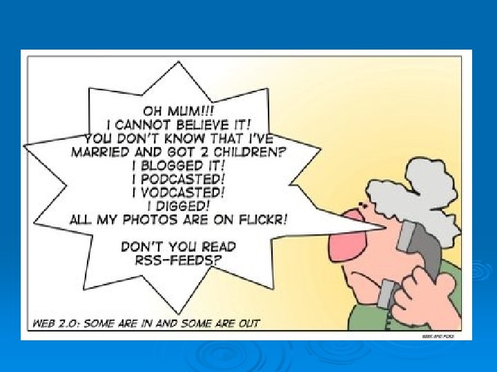 Web 2. 0 Technologies: Ø Blogging Ø Social networking Ø Video sharing Ø Photo sharing Ø Wikis Ø And many, many more