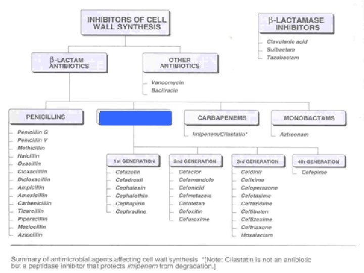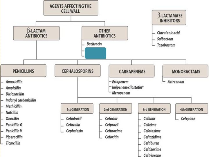Cont’d �Pharmacokinetics: 1. Poorly absorbed orally( IV/ 8 hr ) 2. Limited penetration into the CSF 3. Excreted primarily by the kidney 4. Half- life 2 hrs 5. resistant to the action of β-lactamase �Side effects: 1. Similar to other β-lactams
