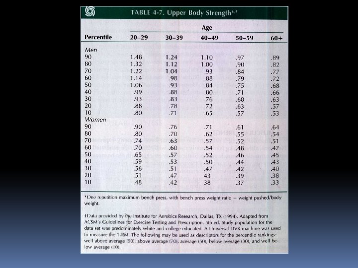 Muscular Strength – 1 RM Clear communication with the subject is needed to facilitate determination of the 1 RM. The process continues until a failed attempt occurs. The 1 -RM is reported as the weight of the last successfully completed lift.
