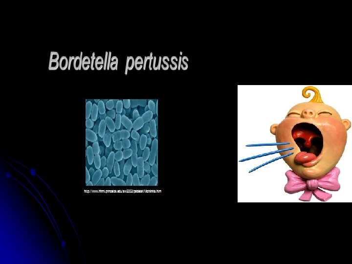 • • • Aerobic, Gram negative coccobacillus Alcaligenaceae Family Specific to Humans Colonizes the respiratory tract Whooping Cough (Pertussis)