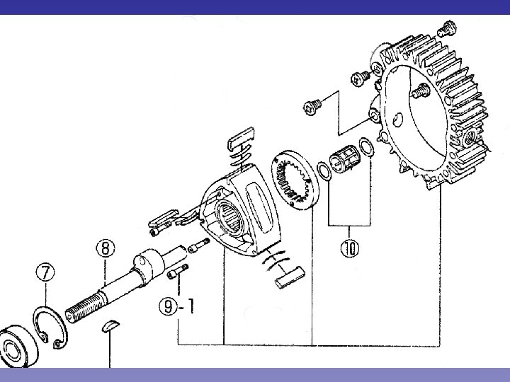 The intake and exhaust ports are located in the housing. There are no valves in these ports. The exhaust port connects directly to the exhaust, and the intake port connects directly to the throttle. Output Shaft The output shaft has round lobes mounted eccentrically meaning that they are offset from the centerline of the shaft. Each rotor fits over one of these lobes. The lobe acts sort of like the crankshaft in a piston engine. As the rotor follows its path around the housing, it pushes on the lobes. Since the lobes are mounted eccentric to the output shaft, the forc that the rotor applies to the lobes creates torque in the shaft, causing it to spin.
