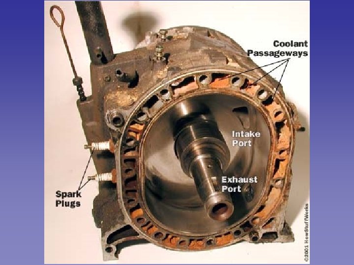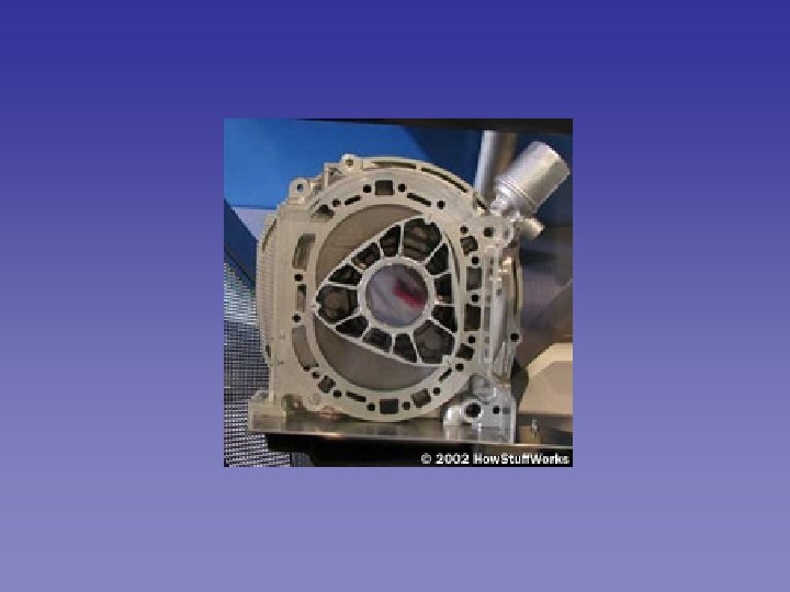 A rotary engine is an internal combustion engine, like an automotive engine but it works in a completely different way than the conventional piston engine. In a piston engine, the same volume of space (the cylinder) alternately does four different jobs -- intake, compression, combustion and exhaust. A rotary engine does these same four jobs, but each one happens in its own part of the housing. It's kind of like having a dedicated cylinder for each of the four jobs, with the piston moving continually from one to the next. The rotary engine (originally conceived and developed by Dr. Felix Wankel is sometimes called a Wankel engine, or Wankel rotary engine.