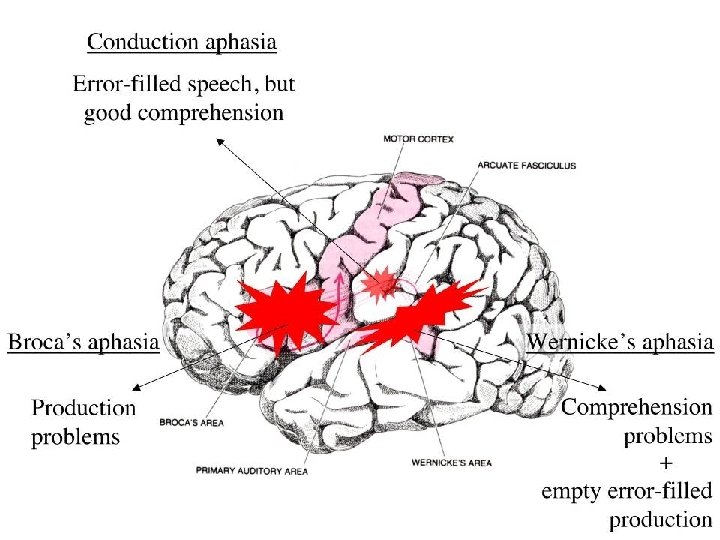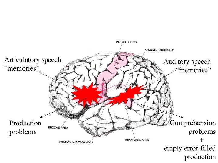 HISTORIA DE LA AFASIA 2. Modelo no proveía la cantidad de características del impedimento de función; podía solo explicar la pérdida de la capacidad de función. No describía el habla tipicamente agramática, sin inflexiones, carencia de palabras de unión.