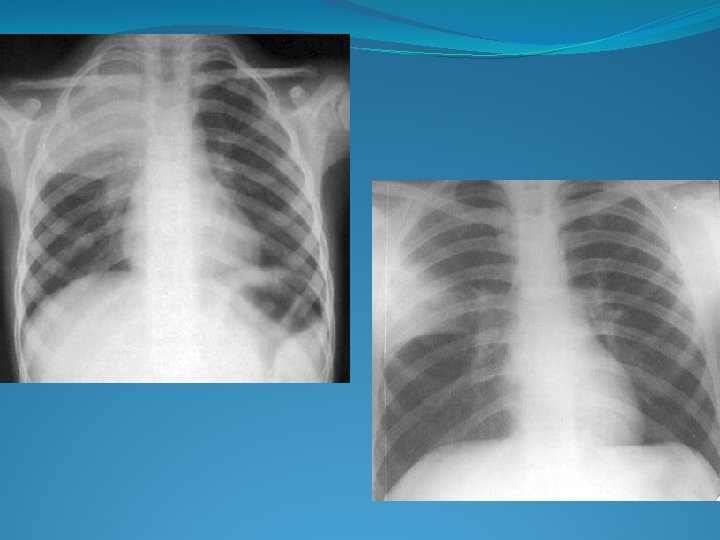 Examen radologic �in pneumonia lobara sau segmentara opacitatea subcostala bine delimitate, omogena in stadiile incipiente; �in bronhopneumonie unice sau multiple opacitati disseminate, de diferite marimi, forma, intensitate cu contur neclar, neomogene si variabile �in pneumonia interstitiala