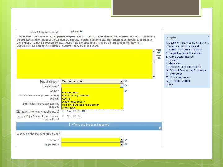 Advantages of NCC MERP Index Various systems available for reporting medication errors e. g. Safeguarding, Datix CMFT uses Safeguarding