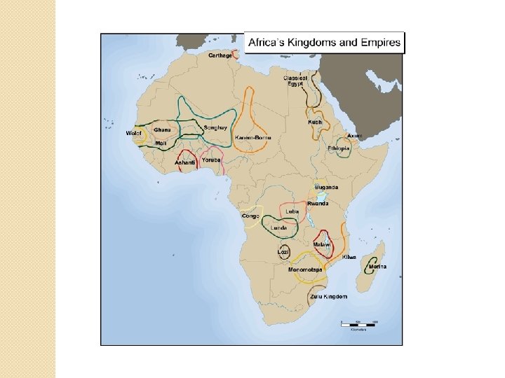Trans-Saharan Trade �Camel and camel saddle � 70 -90 Days to cross the Sahara �First written records from Muslim traders in the 8 th century �Three large empires formed in West Africa as a result of trade: ◦ Ghana 700 to 1100 ◦ Mali 1100 to 1400 ◦ Songhay 1300 -1600