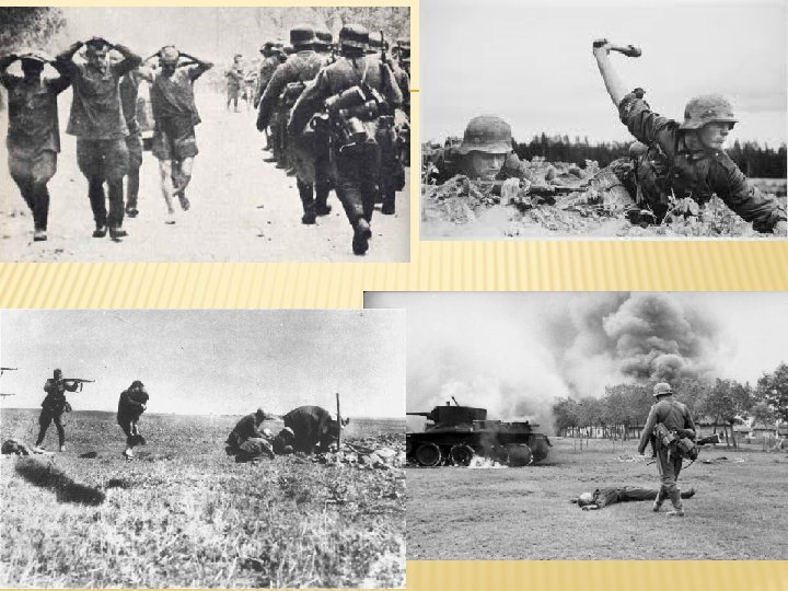 BLITZKRIEG � Hitler utilizes “lighting war” against Poland in at dawn on September 1 st, 1939. � Poland falls in 5 weeks. � The Soviets invade Eastern Poland on Sept. 7 th and the “Winter War”. � Britain and France declare war on Germany on Sept. 3. � The British retreat from Dunkirk in June of 1940, leaving France for the Germans.