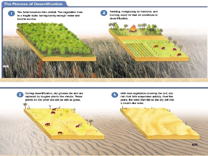 Desertification: expanding deserts • This man attempts to repair barriers that will hold back advancing sand dunes in Niger.