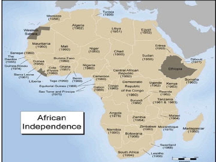 Post Colonial Independence • • Africans divided in their own countries Civil Wars Few Democracies Many Dictators – Corrupt – Brutal