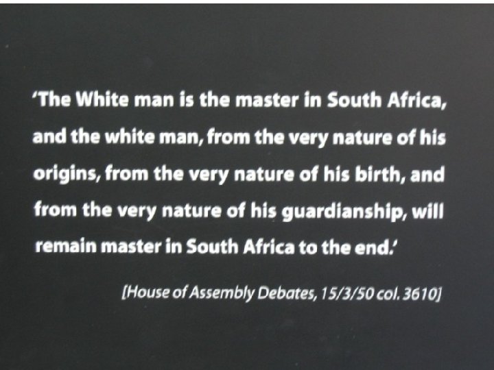Apartheid • System of racial segregation in S. Africa • 1948 -94 • Ruled by 5% of Population- White