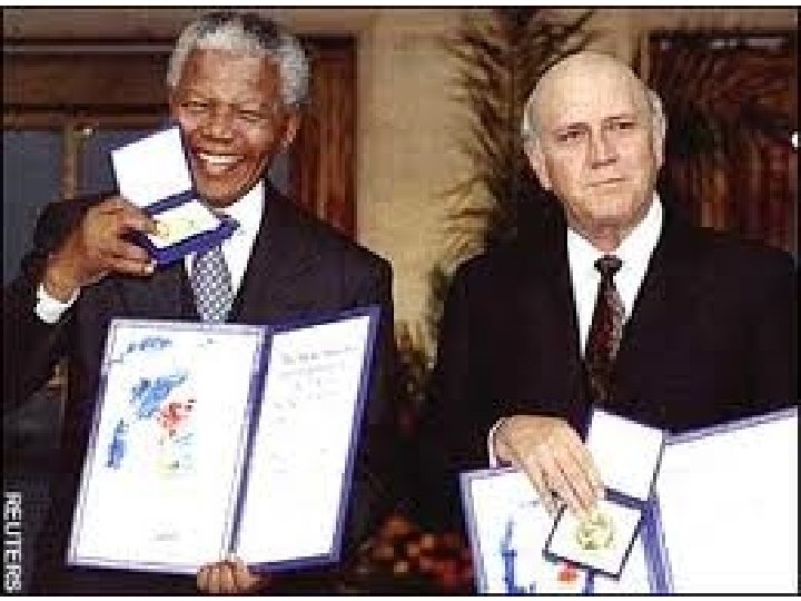 Nelson Mandela • • 1993 Nobel Peace prize with De. Klerk After election New Constitution Truth and Reconciliation Commission – Investigative previous human rights violations