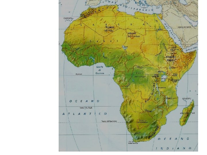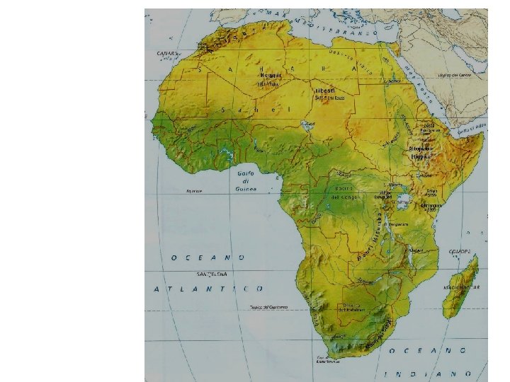 LE ISOLE: l’isola più grande dell’Africa è il Madagascar, affacciato sulle coste sud-orientali; nell’oceano Atlantico si trovano le isole di: Capo Verde, Sao Tomé e Principe, Ascensione, Sant’Elena; nell’Oceano Indiano invece si trovano: Seicelle, Comore e Mascarene Comore