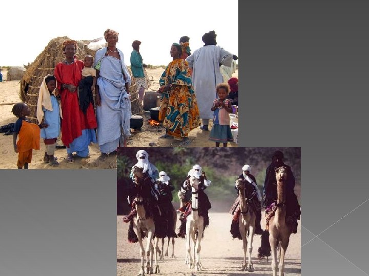 Life in the Sahara A small number of nomadic North Africans continue a lifestyle and culture that, for hundreds of years, has seen little change. � One of these Berber groups are called the Tuareg. They live as nomads, herding their goats and camels according to the season in search of water and fresh grass. � The dryness of the Sahara allows for only a small number of people to live here. Currently, about 2. 5 million people live in a land that covers 3 million square miles, about 1 person per mile- the lowest density of people anywhere on earth. �